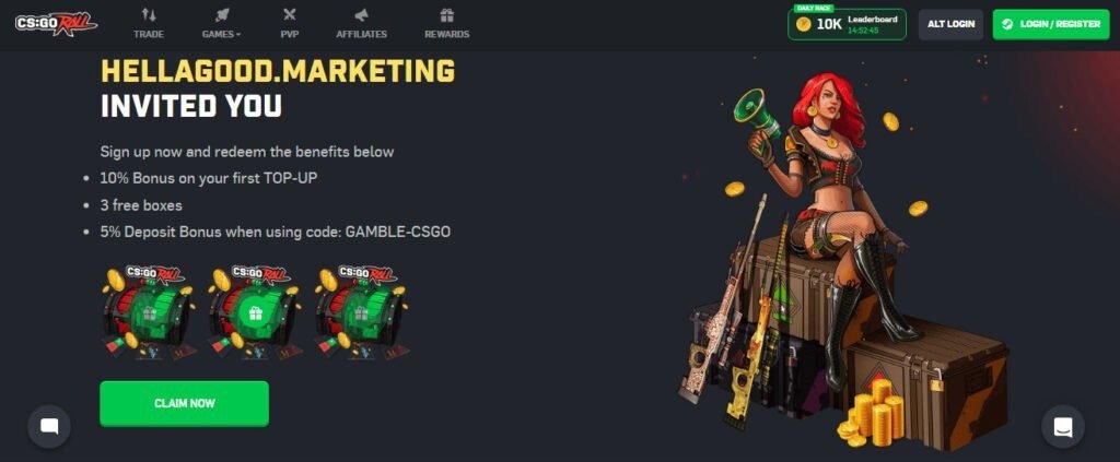 CSGORoll is one of the most reputable and trusted CS2 gaming sites on the market. Players love wagering on the site due to fast-paced gaming options and fair results. Community is magnificent and friendly. It goes without saying that CSGORoll offers some of the best rewards primarily dedicated to loyal players. This is an additional reason why CSGORoll is a fan-favorite.